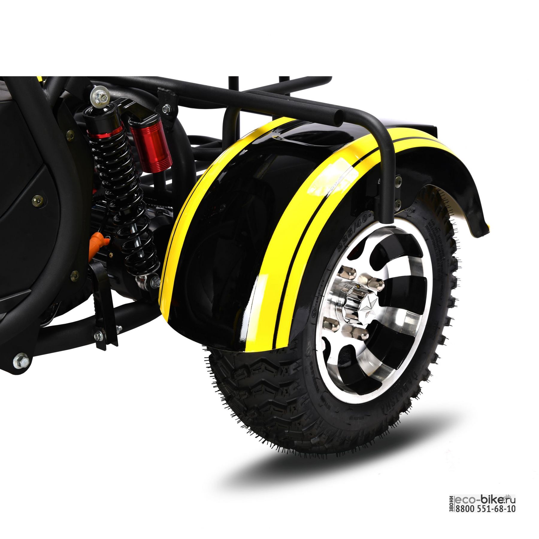 - шоссейная резина на 10-дюймовых колесах с низким профилем позволяет круглогодично использовать скутер и без проблем передвигаться по бездорожью и пересеченной местности;